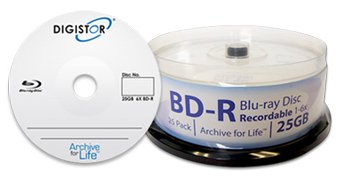 DIGISTOR™ Blu-ray BD-R blank discs are designed for storage of large amounts of computer data. The 25GB capacity of Blu ray writable discs are great for authoring and backup of high definition (HD) entertainment such as home movies and videos.